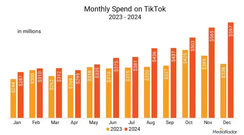 Nel frattempo, secondo Media Radar, la spesa pubblicitaria continua a salire: nel 2024 sono stati investiti 4,8 miliardi di dollari, +27% rispetto al 2023.
