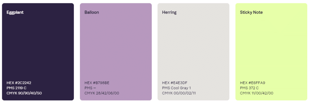 Viene infatti preferita per dare maggiore versatilità quando si mettono in risalto i prodotti. La palette secondaria include due tonalità di viola – uno più profondo e intenso, l’altro più chiaro e moderno – un grigio polveroso e un verde chiaro a base calda.