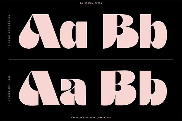 Un altro nuovo font gloriosamente OTT, ispirato agli anni ’70, BN Modern Ombra è una rivisitazione moderna del classico Motter Ombra, originariamente progettato da Othmar Motter nel 1973 e digitalizzato da Linotype. Per creare questa nuova interpretazione, Brandon Nickerson ha utilizzato cerchi geometrici e forme a goccia e ha completamente rimodellato alcune lettere.
