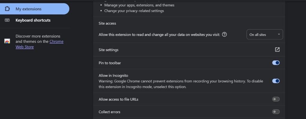 - Abilita la navigazione in incognito. Accedi da Chrome a chrome://extensions/ e nella tab riservata a VeePN, clicca su Dettagli e poi su Abilita in incognito. Apri una finestra di navigazione in incognito e attiva la tua VPN cliccando sul tasto verde e scegliendo una località, come ad esempio Virginia – USA.