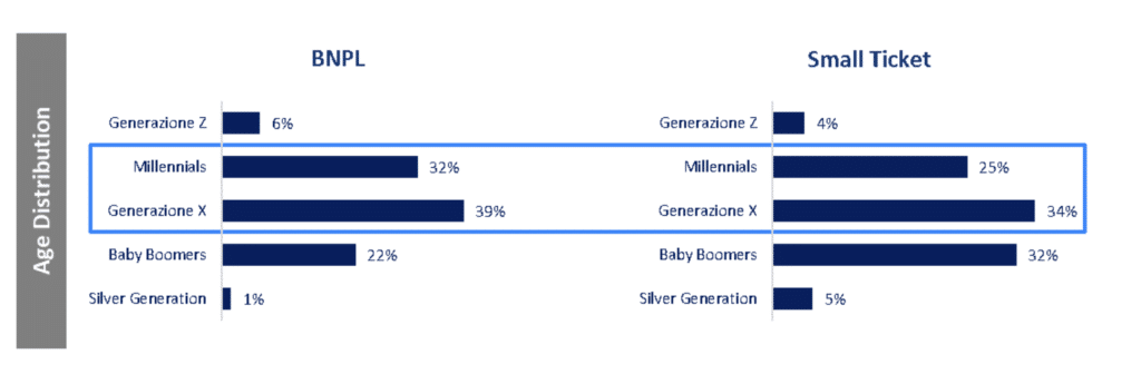 Analizzando il profilo d’età degli utenti BNPL, i Millennial e la Generazione X costituiscono il 71% del totale.