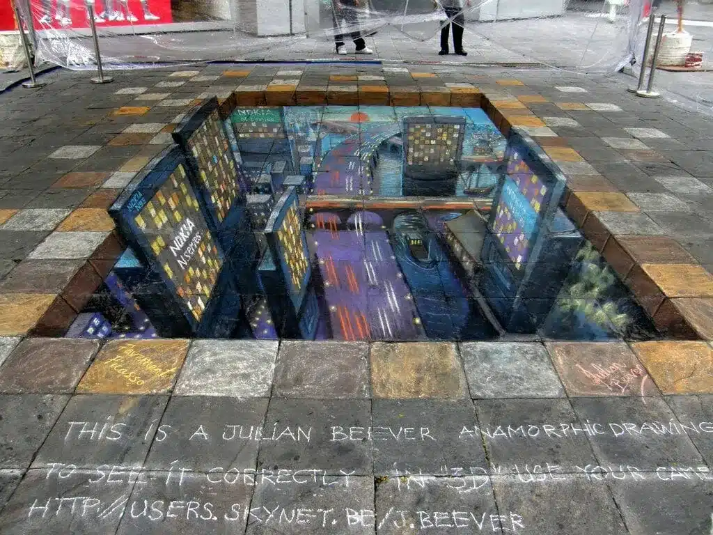 Nel 2007, Nokia si è affidata all’artista Julian Beever per realizzare un’opera 3D, sulle strade di Singapore.