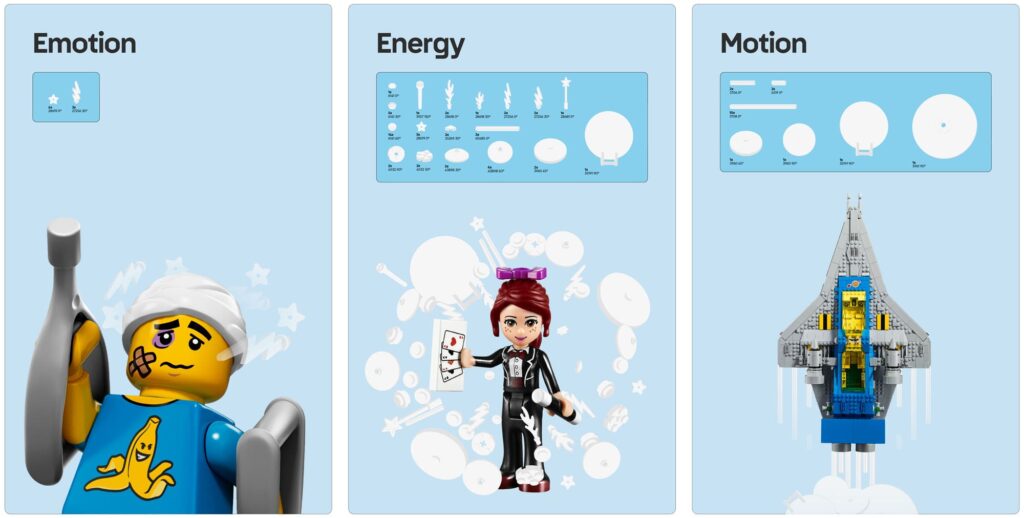 Tra gli altri strumenti troviamo anche le minifigure LEGO, così come le Action Graphics, che consentono alle persone di raccontare le proprie storie e di creare un collegamento emotivo con i prodotti LEGO.