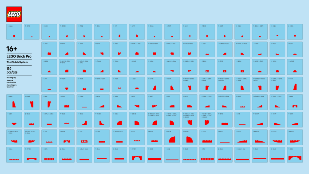 Il “clutch system” (denominato LEGO Brick Pro) consente di replicare digitalmente il processo di costruzione degli elementi LEGO sotto forma di un carattere (o 130 glifi).