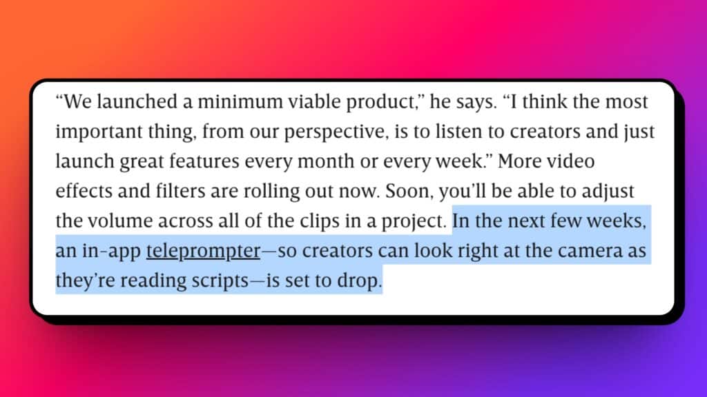 Instagram testa un teleprompter integrato per Edits